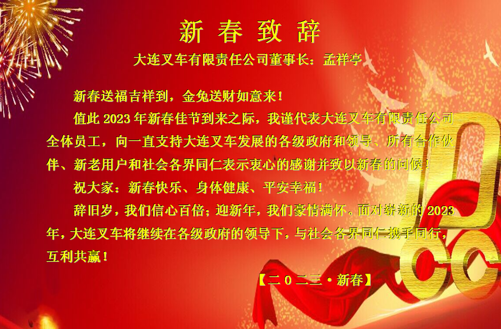 大连叉车有限责任公司董事长孟祥亭新春致辞